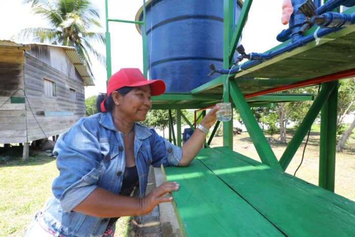 “Nossa comunidade estava sofrendo mesmo sem água e isso trazia muito sofrimento porque também temos as crianças que pegam diarreias tomando a água sem tratamento, mas como chegou essa estrutura está sendo uma bênção, e estamos muito felizes com essa água que temos agora”, disse a professora Cristina Clemente da comunidade Lauro Sodré.